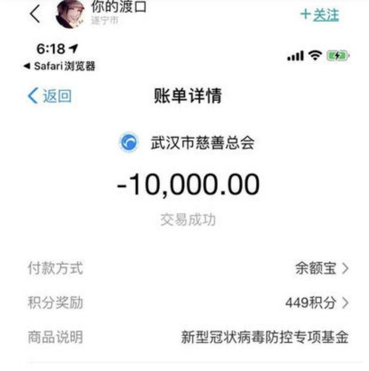 2020年新冠疫情爆发的时候,口子姐二话不说就拿出了自己在B站发视频挣到的钱,为武汉捐出了10000元用于支援灾区。